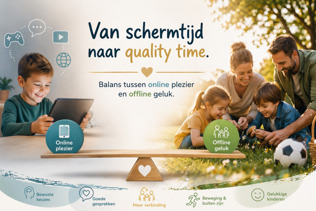 Juist daarom is het waardevol om kinderen te begeleiden bij het maken van slimme en bewuste keuzes. Wanneer is het fijn om online te zijn? Hoe lang is een gezonde schermtijd? En hoe zorg je voor een goede balans tussen de digitale wereld en momenten van rust, beweging en buiten spelen?